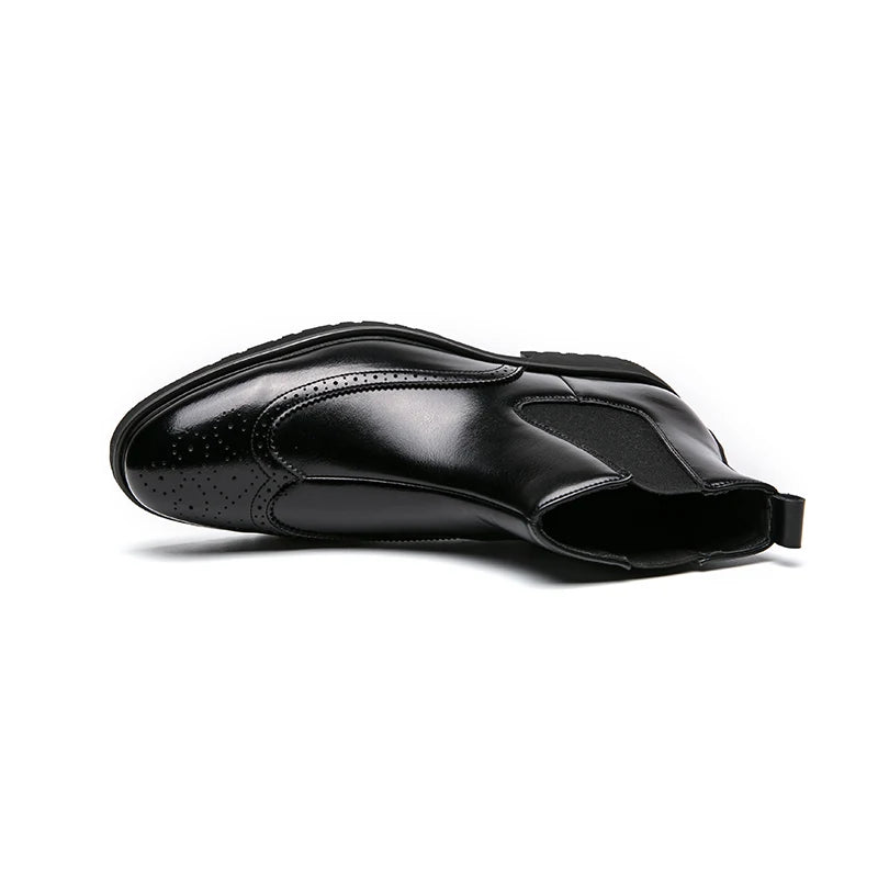 Bottes Chelsea homme de luxe en cuir véritable, alliant style classique Brogue et confort moderne.