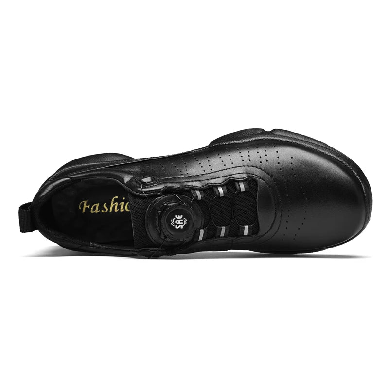 Chaussures homme en cuir noir véritable au design sophistiqué, parfaites pour allier élégance business et confort sportif.